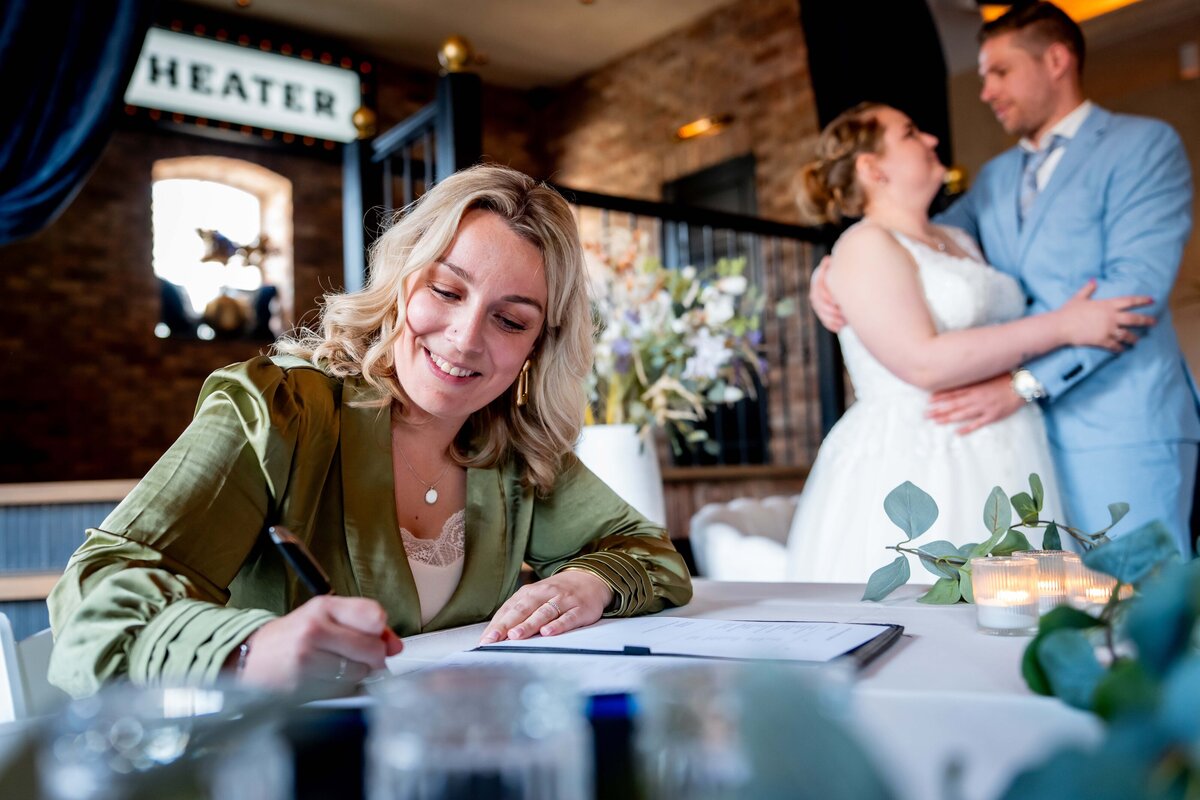 Met deze punten kwamen we automatisch bij Liselotte uit. Moeder van onze 2 lieve nichtjes en neefje, iedere dag alle ballen in de lucht houdend, staat voor de klas ofwel deze dame kun je om een boodschap sturen. Waar we dachten "goh Liselotte kent ons wel, hoeven we verder niet veel te doen!". Niet minder was waar. We kregen uitgebreide professionele vragenlijsten waarin we mooie momenten bloot hebben gegeven, waar we zelf zonder de vragen zeker niet op waren gekomen. Hiervan ze een prachtige, tranen roerende en tot op de seconde uitgedokterde speech heeft gemaakt, waardoor onze planning en dag exact begon zoals gedacht en gehoopt.